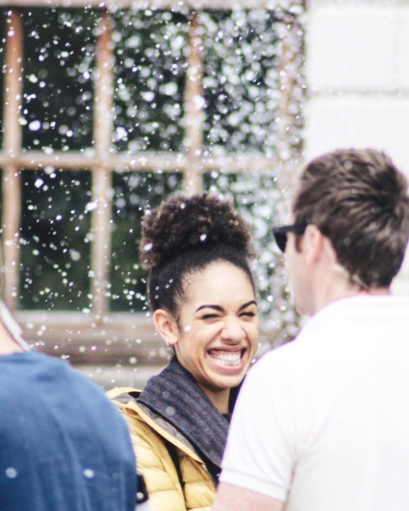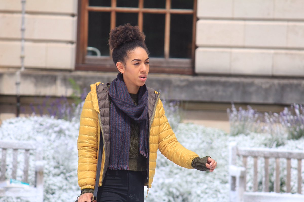 As filmagens estão acontecendo em Cathays Park, Cardiff. O cenário montado é para a Universidade St Luke em Bristol. Aparentemente Bill é uma estudante e é um dia com muita neve.